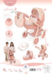 Dieser klappbare Puppenwagen überzeugt durch eine durchdachte Funktionskombination und wunderschönes spanisches Design. Die abnehmbare Babywanne kann in oder gegen die Fahrtrichtung angebracht werden und lässt sich leicht in einen sportlichen Sitz verwandeln. Dank des Dreipunkt-Gurtes sitzt die Puppe stets sicher und stabil.