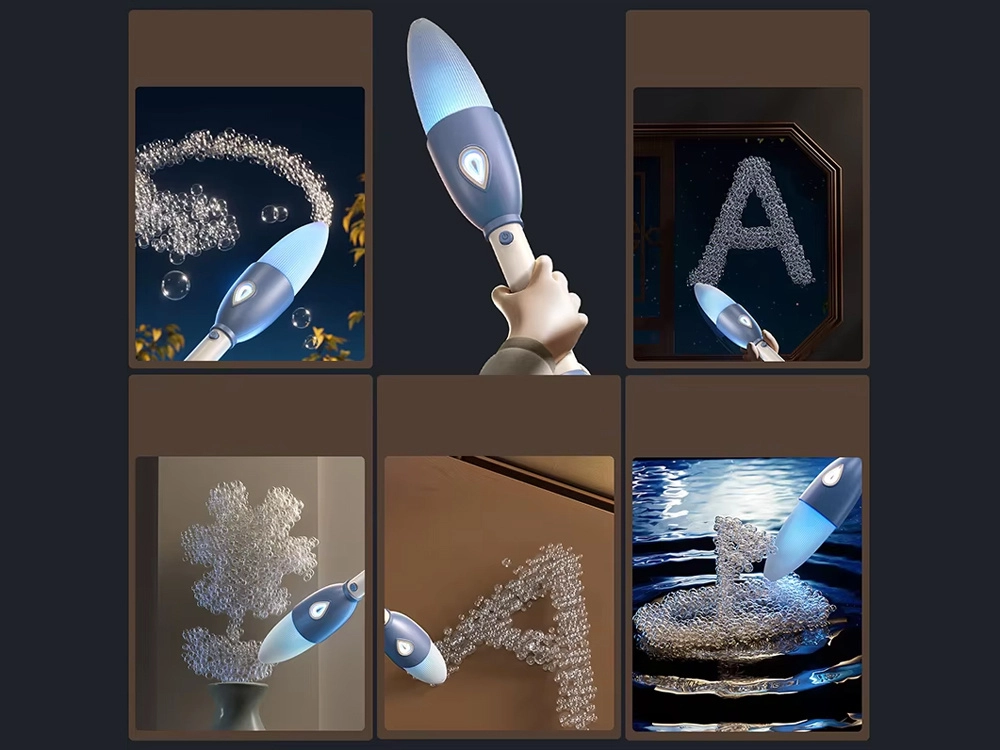 Der originelle „kalligrafische“ Blasenstift verbindet die Tradition des Pinsels mit moderner Technologie. Er ermöglicht Kindern und Erwachsenen, in der Luft mit bunten Blasen zu schreiben, nachzuzeichnen und zu malen – ideal für Partys, Gartenvergnügen und familiäre Momente. Der elektrische Antrieb erzeugt mühelos einen stabilen Blasenstrom.