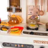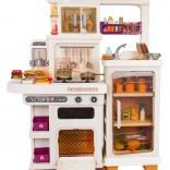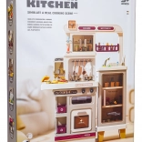 Große Kinder-Megaküche mit Lichtern, Geräuschen und Dampf – beige, 93 Zubehörteile