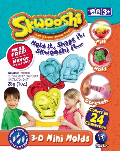 Die SKWOOSHI-Beutel bringen die Magie des Modellierens im kompakten Format. Jedes Öffnen ist eine Überraschung – innen finden Sie 28 g Premium-Modelliermasse und eine 3D-Miniform mit einzigartigem Design. Die Masse klebt nicht, macht keinen Schmutz und trocknet nicht aus – perfekt für die wiederholte Verwendung.
