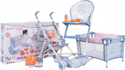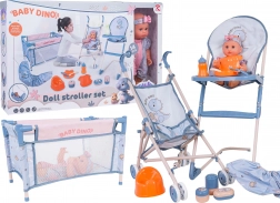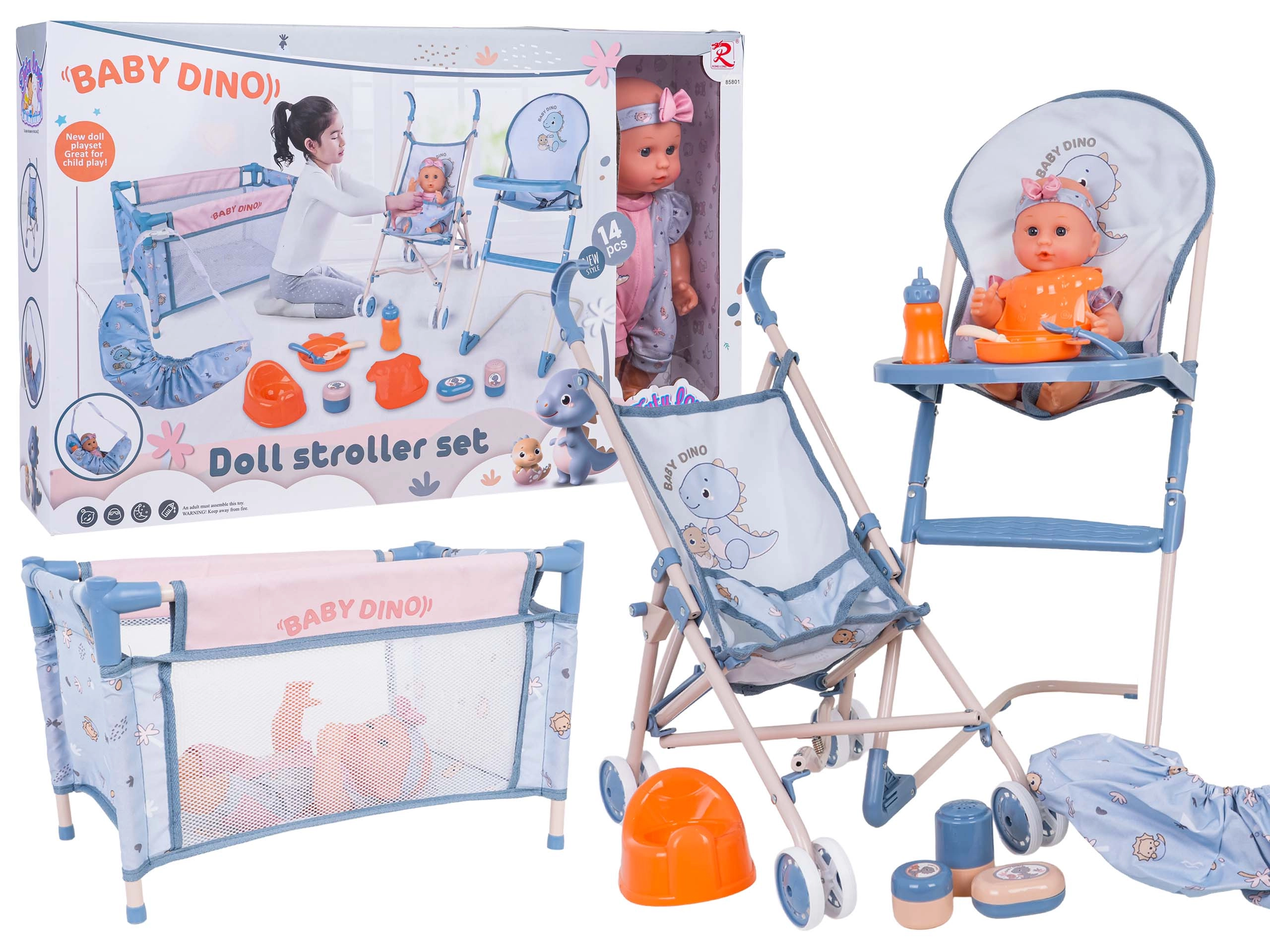 Dieses Mega-Set BABY DINO bietet Kindern viele Möglichkeiten für kreatives und realistisches Pflege-Spiel. Die Puppe hat bewegliche Arme und Beine, trägt einen farbenfrohen Strampler mit Haarband, kann aus dem Fläschchen trinken und „Pipi“ ins Töpfchen machen. Dank des leichten Kinderwagens, Reisebetts und Hochstuhls können Kinder die Puppe füttern, spazieren fahren und in den Schlaf wiegen.