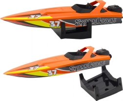 Das Boot besteht aus hochwertigem Kunststoff und besticht durch seinen sportlichen Look in intensiven Farben. Der drehbare Motorblock mit Steuerrad ermöglicht ein leichtes Wechseln der Richtung, sodass Kinder Feinmotorik, Koordination und Vorstellungskraft trainieren.