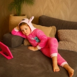 Die niedliche Kapuze mit Ohren und lizenzierter Grafik macht den Overall zum beliebten Kostüm für Karneval und Fotos.