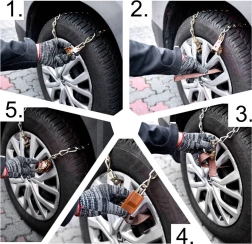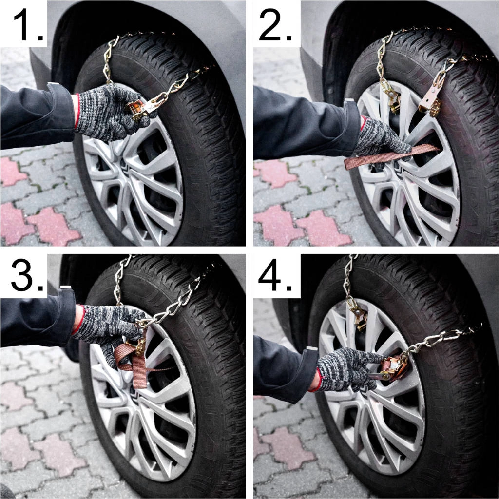 Warten Sie nicht, bis Sie der Winter überrascht. Die universellen Schneeketten aus Metall erhöhen Traktion und Fahrzeugstabilität auf verschneiten und vereisten Straßen. Dank der verstellbaren Länge passen sie hervorragend auf Reifen mit unterschiedlichen Breiten (ca. 16,5–26,5 cm) und lassen sich auch bei widrigen Bedingungen schnell montieren.
