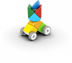 Speziell entwickelte magnetische Elemente haften leicht aus verschiedenen Richtungen. So bauen Kinder mühelos kleine Autos und andere Formen und stärken gleichzeitig ihre Feinmotorik.