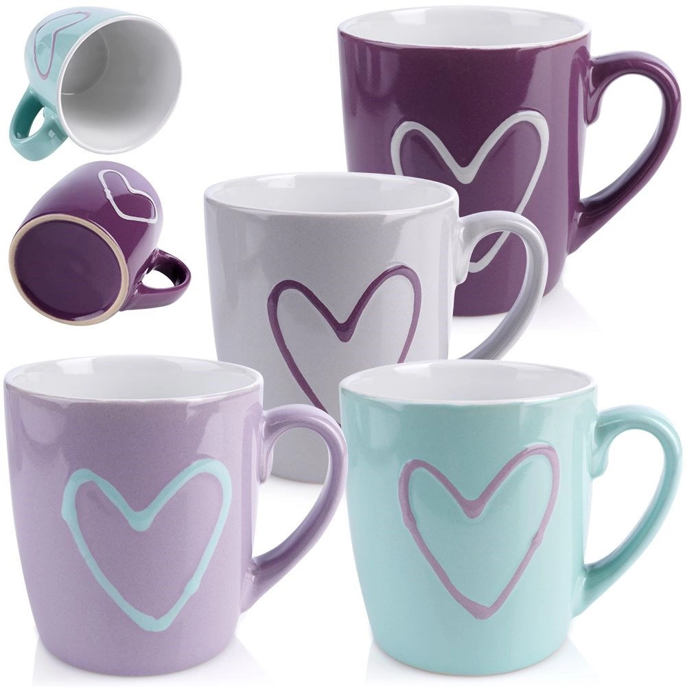 Gönnen Sie sich tägliche Freude an Ihrem Lieblingsgetränk mit dem Set aus vier Keramikbechern mit zartem Herzmotiv. Jeder Becher hat ein Fassungsvermögen von 350 ml und kommt in schönen Pastell- und Neutralfarben, die Küche und Servieren erhellen.
