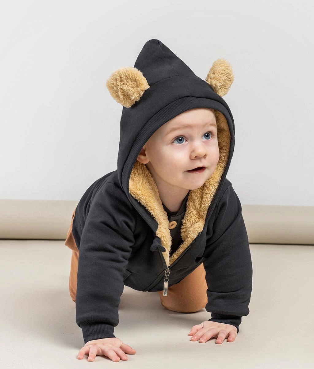 Niedliche und praktische Sweatjacke für Babys an kühleren Tagen. Dank des Futters aus wärmendem Wellsoft-Material bietet sie Wärme und Komfort, während die Kapuze mit Öhrchen und der verlängerte Rücken für Stil sorgen. Ein durchgehender Reißverschluss erleichtert das An- und Ausziehen und elastische Ärmelbündchen sorgen für einen guten Sitz.