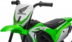 Das lizenzierte Kindermotorrad BABY MIX HONDA CRF 450R grün verbindet das realistische Erscheinungsbild des beliebten Modells mit sicherem Betrieb für Kinder ab 24 Monaten. Die einfache Pedalsteuerung, stabile breite Räder mit Geländeprofil und der bequeme Sitz machen die Fahrt zum Spaß und fördern gleichzeitig die Motorik.