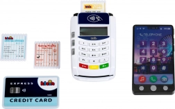 Im Set enthalten sind eine Zahlungskarte, 3 Kassenbons und ein Smartphone mit holografischem Bildschirm, das „Tap to Pay“ unterstützt. Das Telefon verfügt über 3 Funktionstasten mit verschiedenen Geräuschen und eine Taschenlampe. Das Terminal wird mit Batterien betrieben (nicht enthalten), sodass der Spielspaß stundenlang dauern kann.