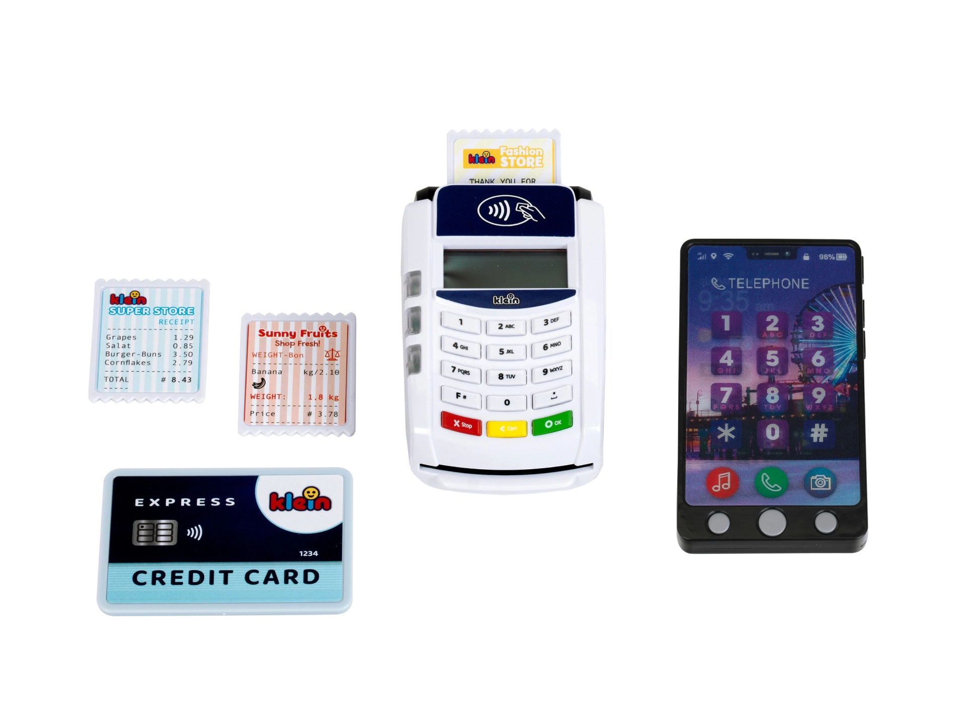Entdecken Sie tolles Kaufladen-Spiel mit dem KLEIN-Zahlungsterminal, das Kindern ermöglicht, echte Einkäufe nachzuahmen. Dank kontaktloser Zahlung, realistischen Geräuschen und Lichteffekten wird jede Transaktion zu einem unterhaltsamen Erlebnis. Kinder fördern spielerisch ihre sozialen Fähigkeiten, ihre Fantasie und ihre finanzielle Bildung.