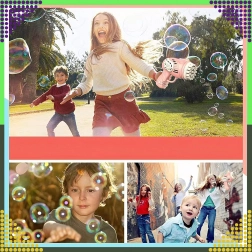 Einfach die Flasche mit der Lösung aufschrauben, den Abzug drücken und zusehen, wie bunte Blasen durch die Luft schweben. Unbeschwerter Spaß im Garten, auf dem Spielplatz und im Kinderzimmer.