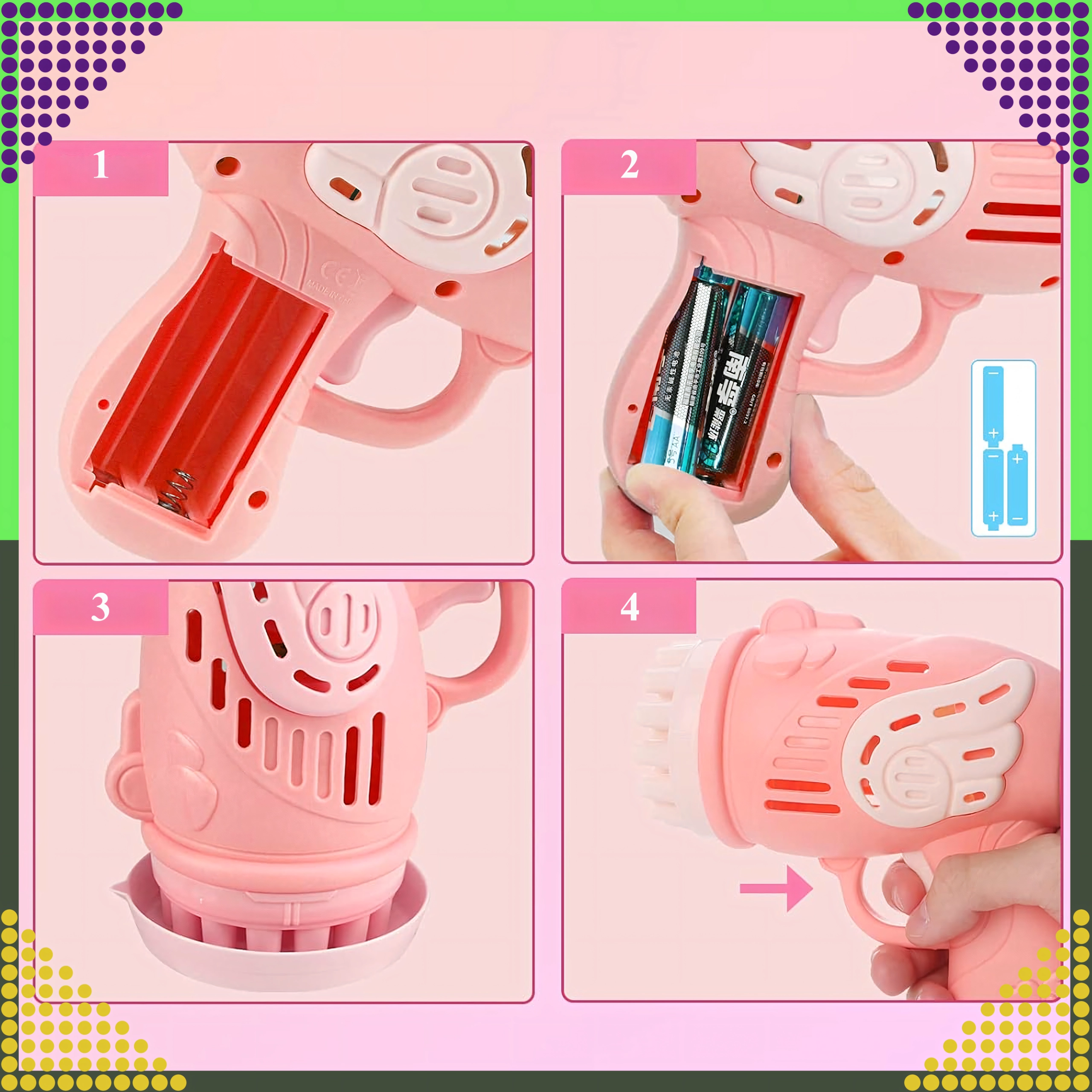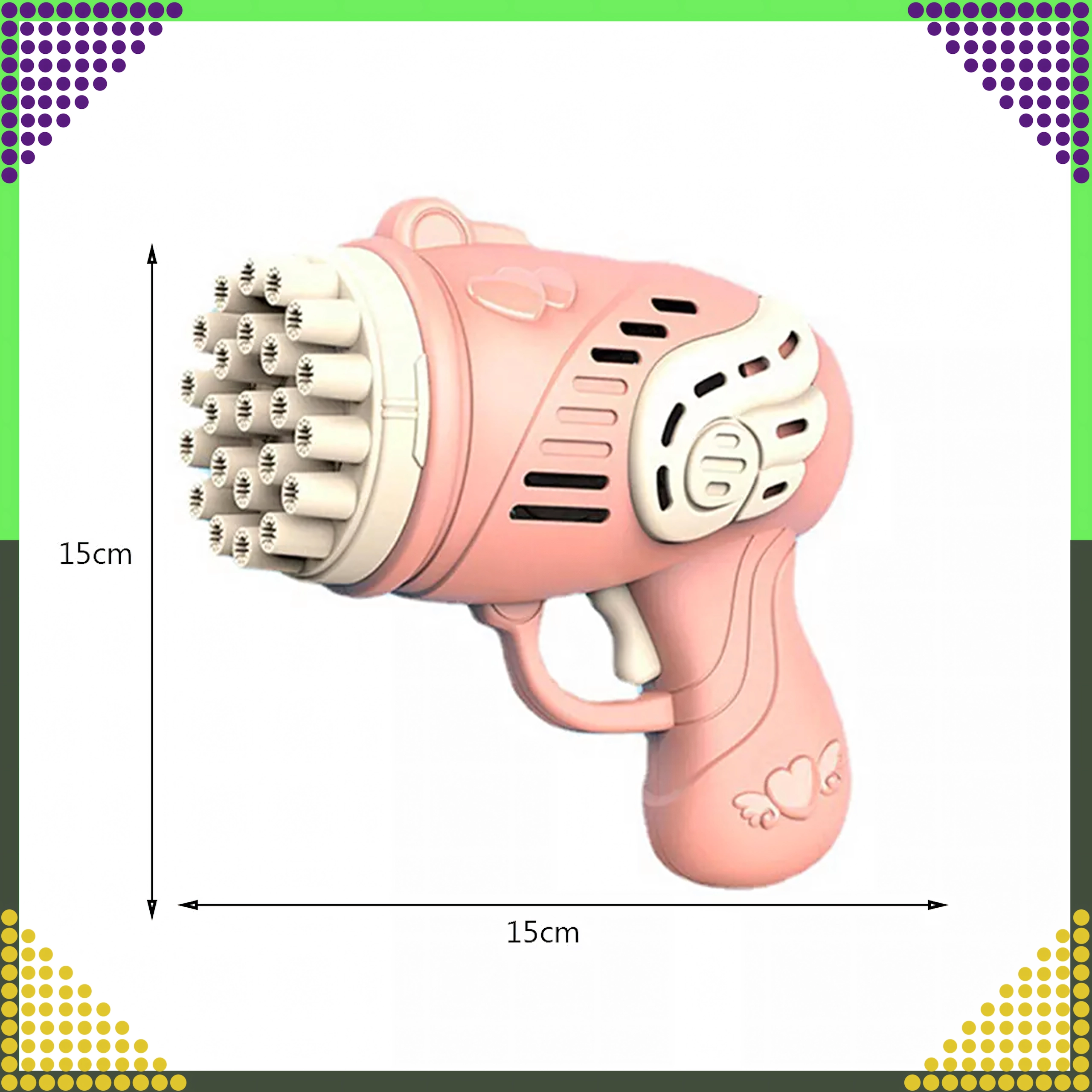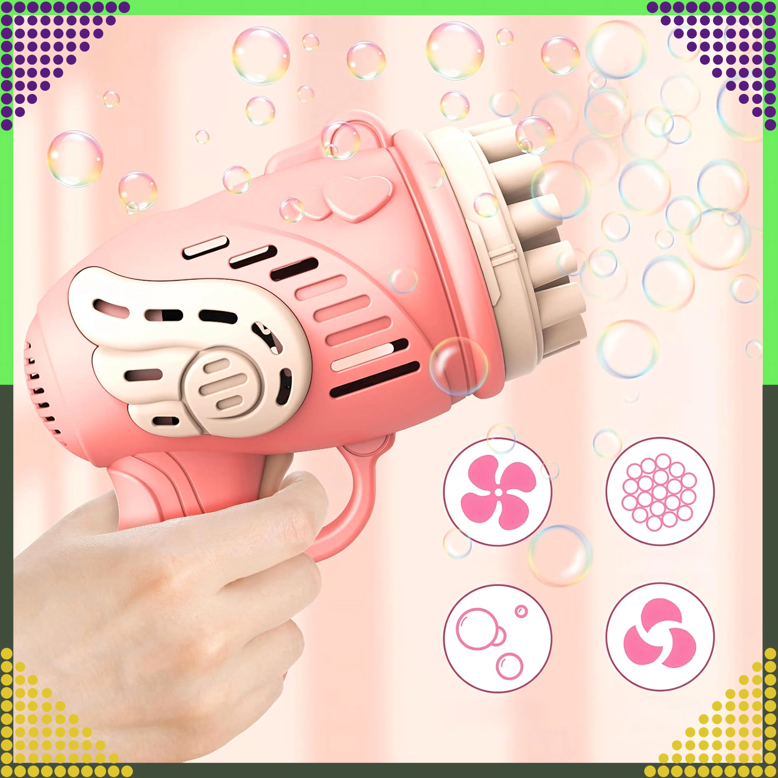 Entdecken Sie die Magie der Seifenblasen mit der rosa Pistole, die mit einem einzigen Druck Dutzende bis Hunderte schillernder Blasen erzeugt. Leichtes, ergonomisches Design und mehrere Düsen sorgen für einen kräftigen Blasenstrom und unvergesslichen Spaß für Kinder und Erwachsene.