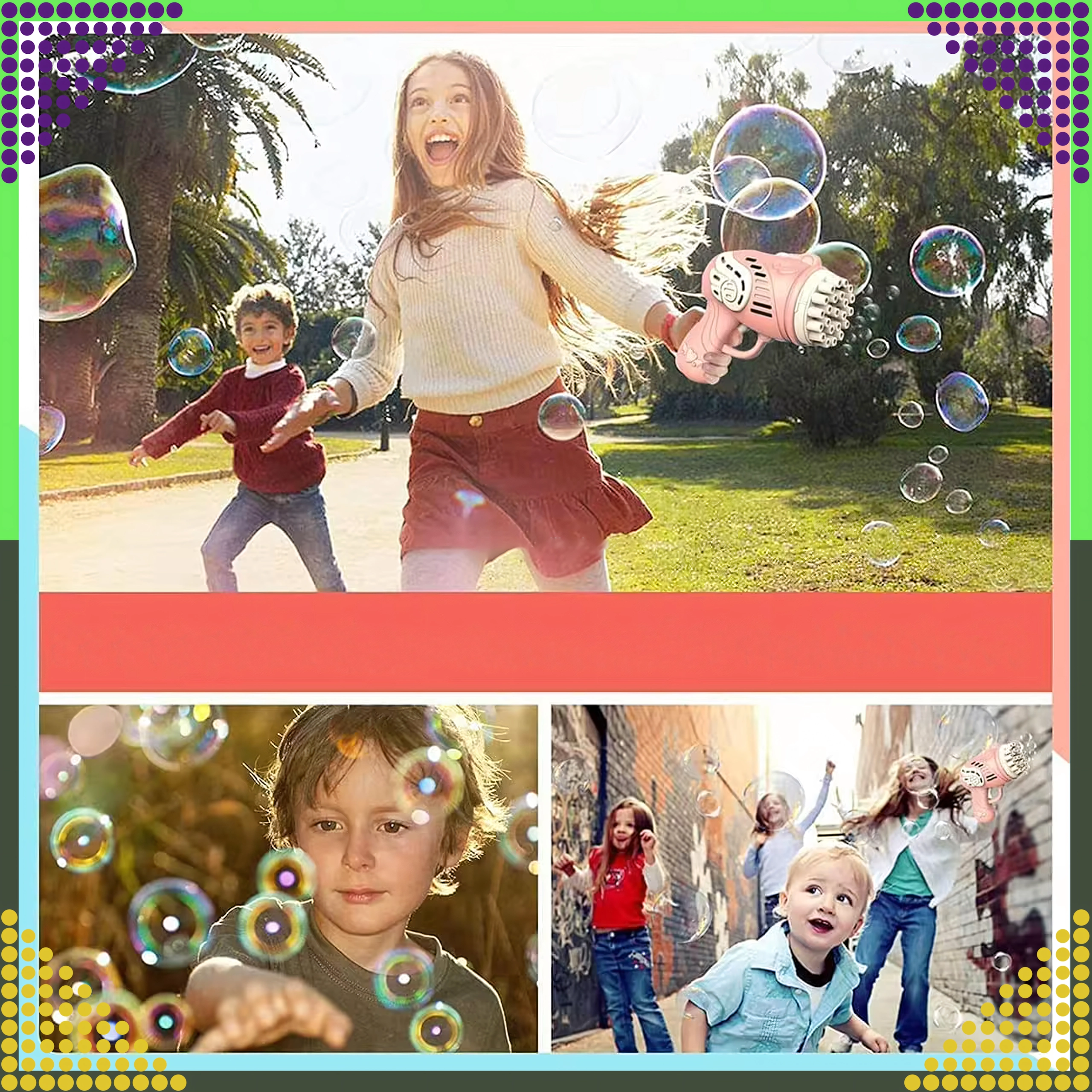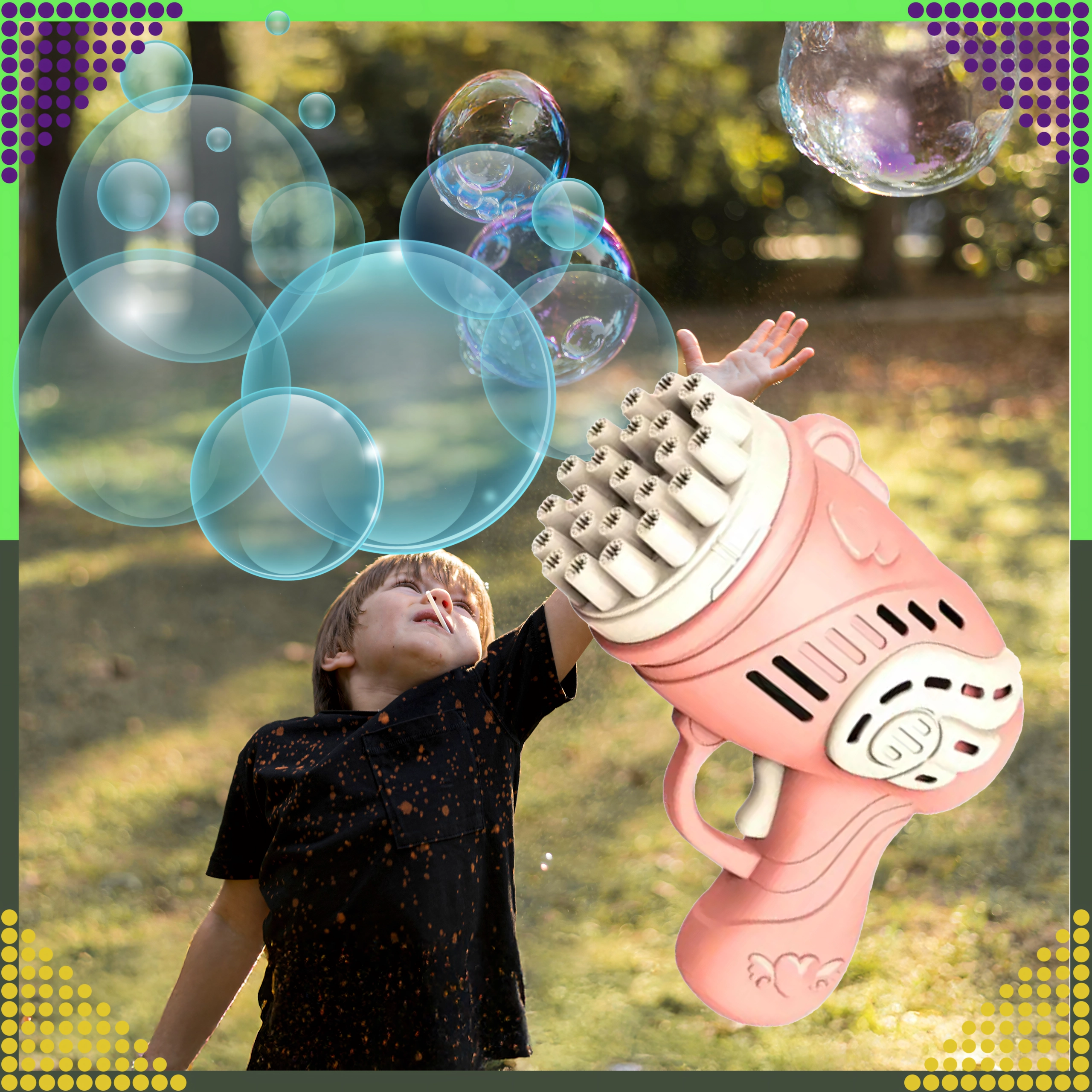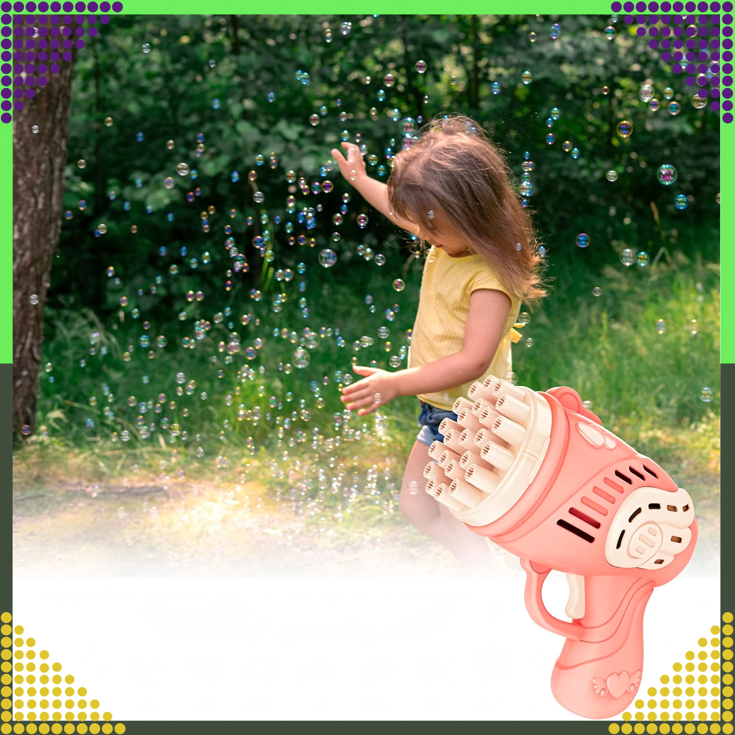 Entdecken Sie die Magie der Seifenblasen mit der rosa Pistole, die mit einem einzigen Druck Dutzende bis Hunderte schillernder Blasen erzeugt. Leichtes, ergonomisches Design und mehrere Düsen sorgen für einen kräftigen Blasenstrom und unvergesslichen Spaß für Kinder und Erwachsene.