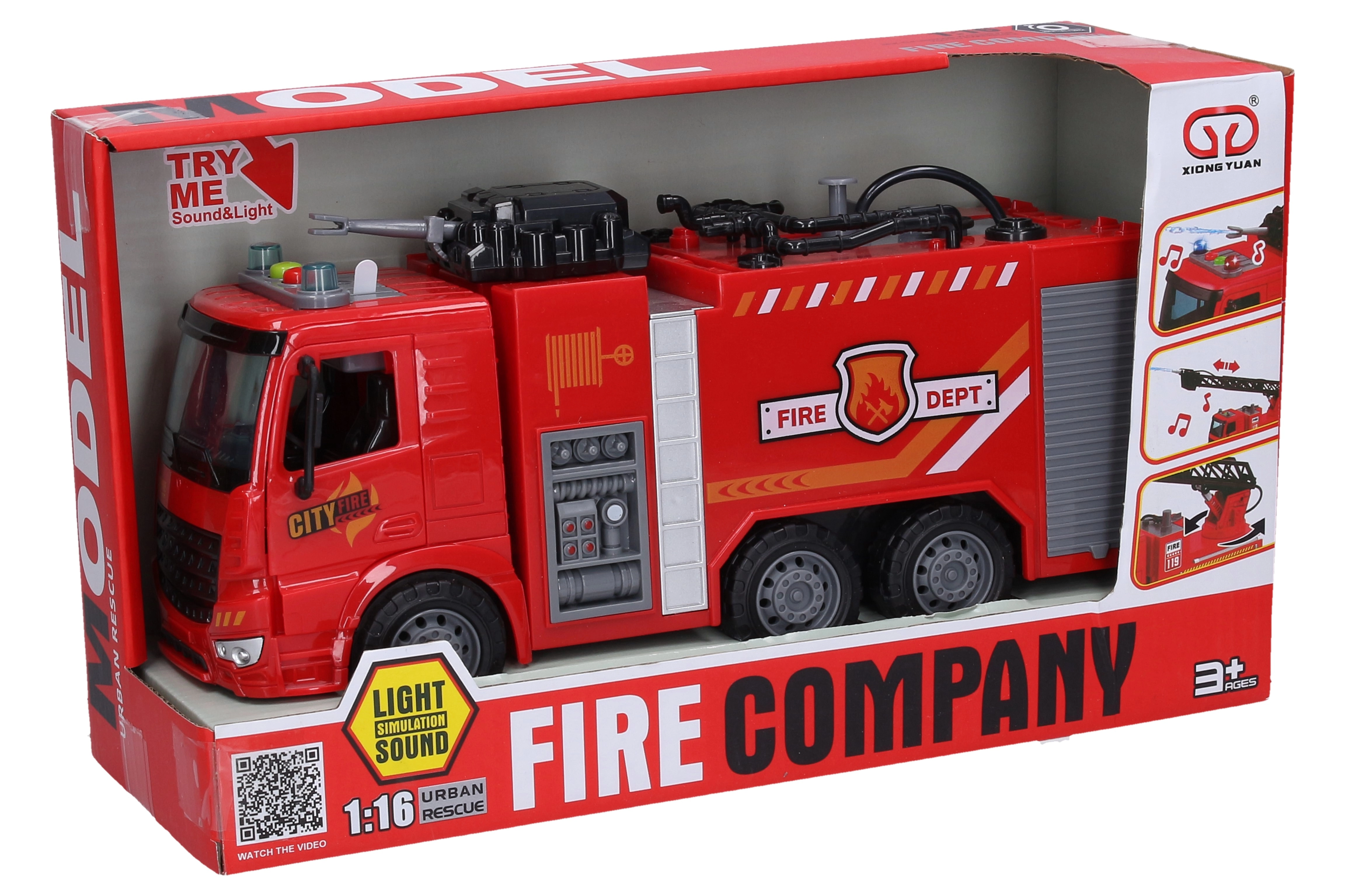 Dieses detailreich gestaltete Feuerwehrauto bringt Kindern jede Menge Action: Nach dem Befüllen des Tanks im Inneren des Tankwagens kann per Taste am Tank echtes Wasser gespritzt werden. Die Tasten an der Kabine aktivieren Licht‑ und Soundeffekte, die das Spielerlebnis intensivieren und die Fantasie kleiner Retter fördern.
