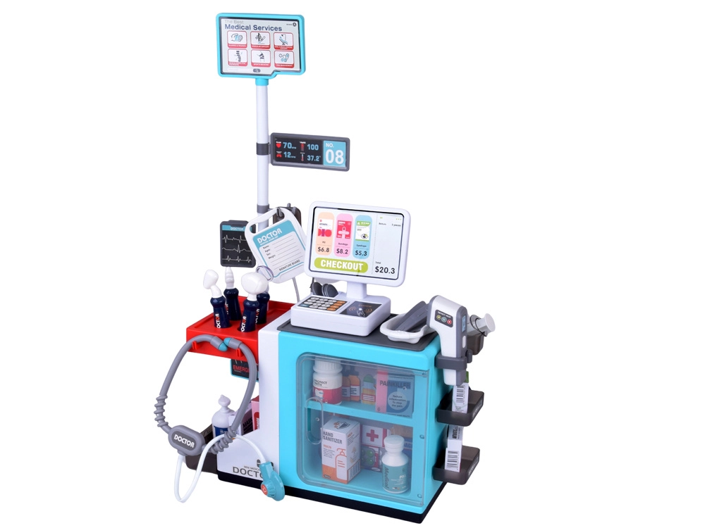 Dieses interaktive Set verwandelt das Kinderzimmer in eine kleine Praxis, Ambulanz und Apotheke. Kinder können Patienten untersuchen, Fieber messen, „Medikamente“ verschreiben und das Bezahlen an der Kasse trainieren. Realistische Geräusche und die übersichtliche Station mit Schränken erhöhen die Authentizität und machen das Spiel besonders fesselnd.