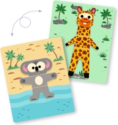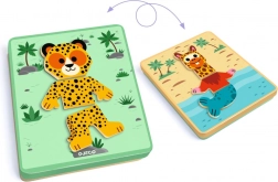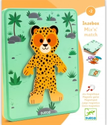 Djeco Inzebox Mix and Match ist ein originelles Magnetpuzzle, das Kindern ermöglicht, Köpfe, Körper und Beine verschiedener Tiere zu kombinieren. Aus einem Set entstehen so Dutzende fröhlicher Kombinationen – vom Gepard bis zur niedlichen Panda. Das Spiel fördert Kreativität, Hand-Auge-Koordination und Feinmotorik.