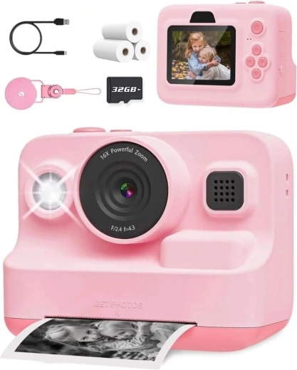 Fördern Sie Kreativität und Neugier der Kinder mit der multifunktionalen Kamera, die den Sofortdruck von Fotos auf Thermopapier 57 × 30 mm ermöglicht. Kinder können sofort eigene Alben, Pinnwände oder Zimmerdeko gestalten. Mit 1080P-Video und 2,4"-Display sind Vorschau und Bedienung auch für Anfänger leicht.