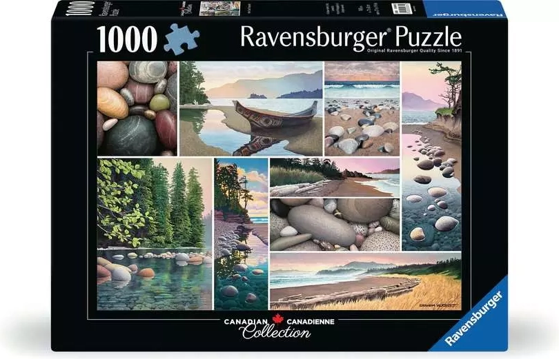 Harmonische Szenerien von Meer, Stränden, Kieselsteinen und Wäldern bringen Ruhe in jeden Raum und machen das Puzzeln zu echter Entspannung.