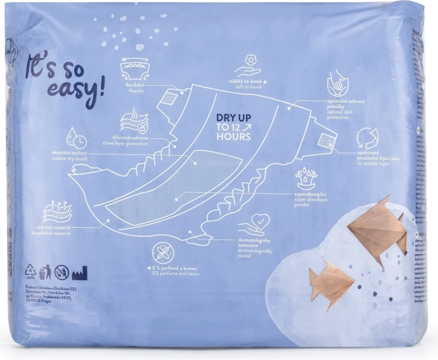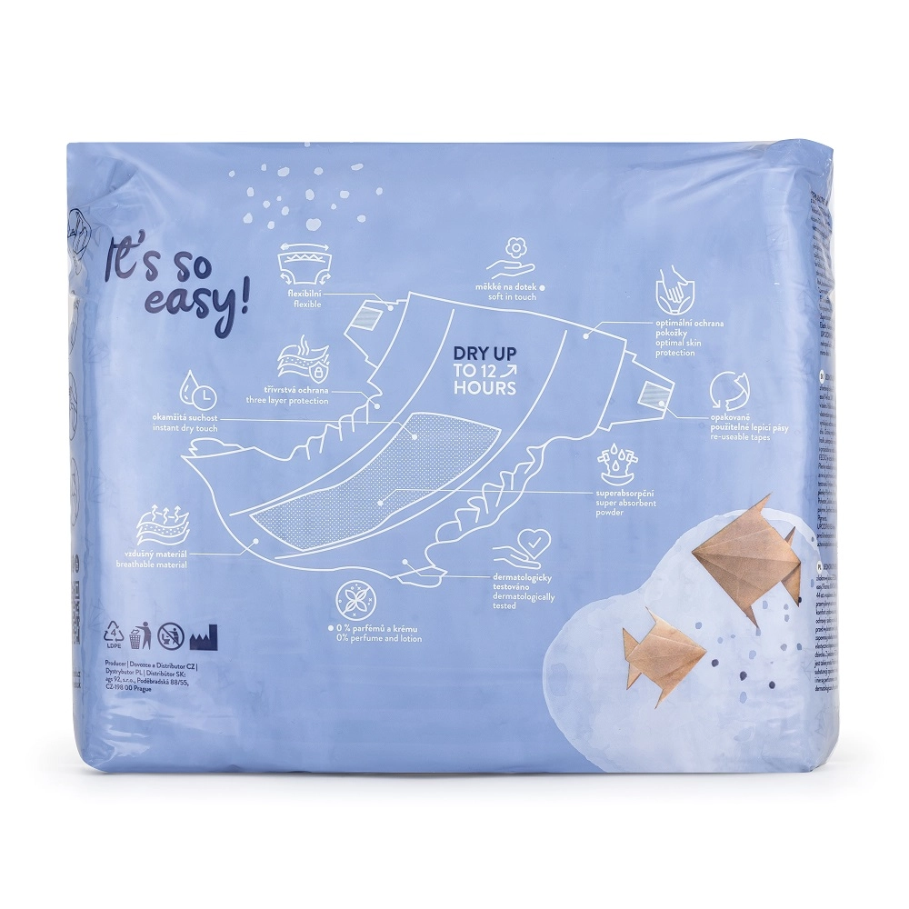 Dank elastischem Bund, sanften Bündchen an den Beinchen und starken, wiederverschließbaren Klettverschlüssen passt sich die Windel flexibel an die Form von Kinderbauch und -schenkeln an. Die Windeln sind dermatologisch getestet, ohne Parfümierung und Latex und somit auch für empfindliche Haut geeignet.