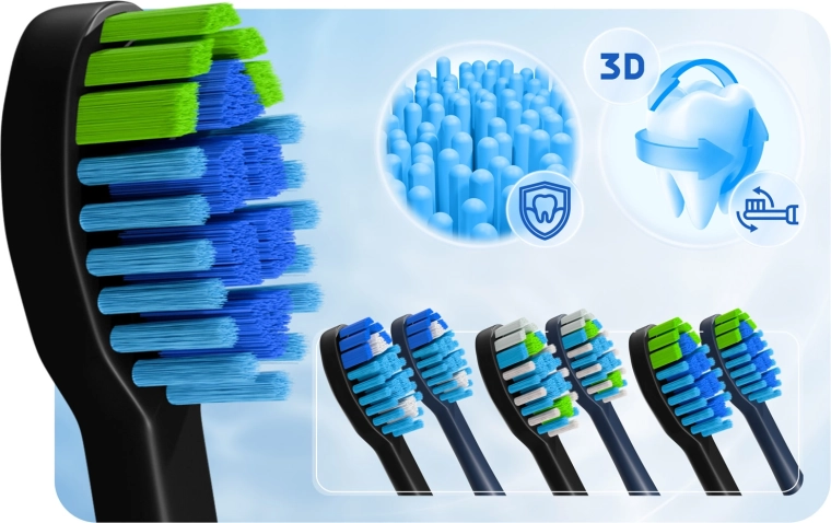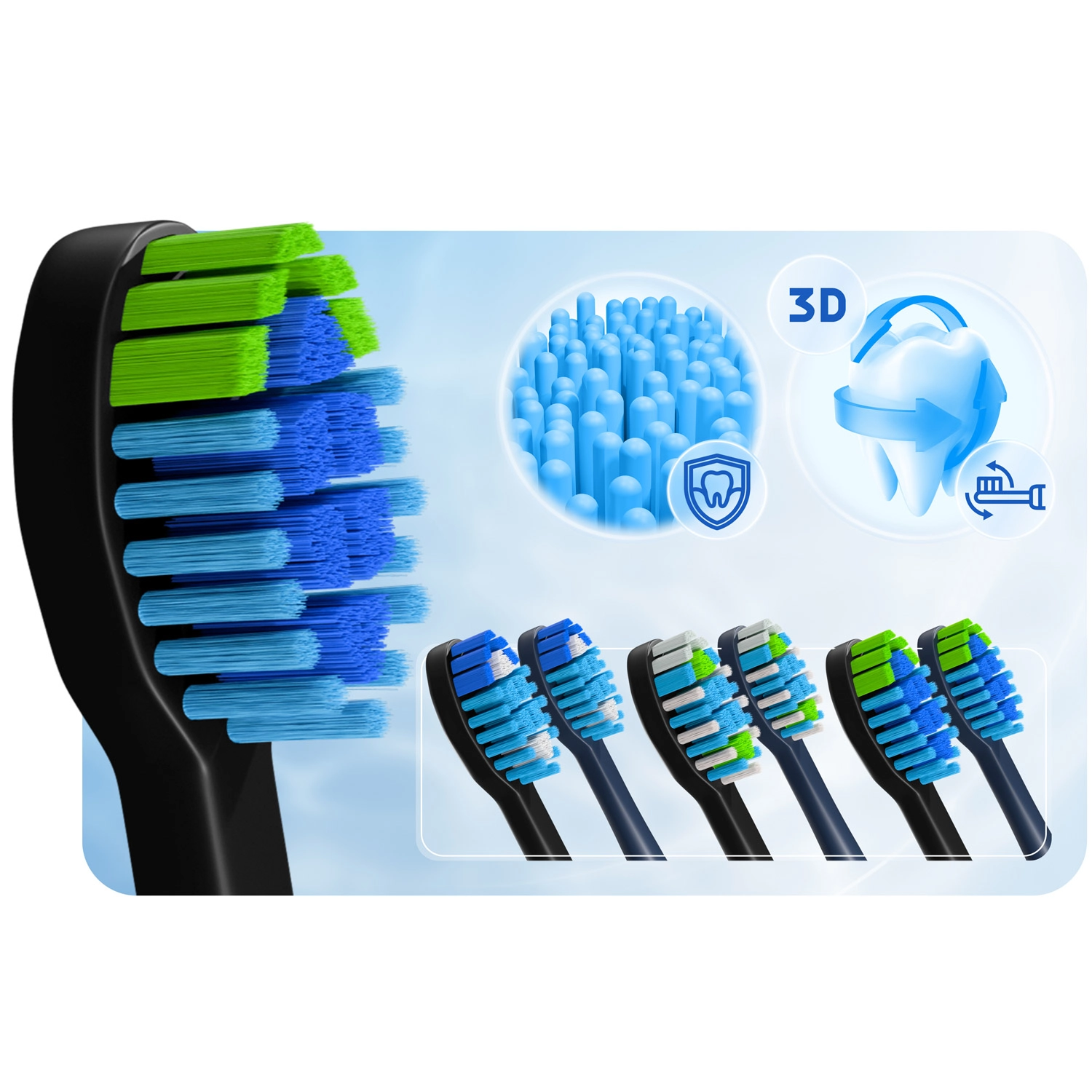 • 6 Bürstenköpfe im Set – praktisch für Paare und Familien (3 marineblau, 3 schwarz).