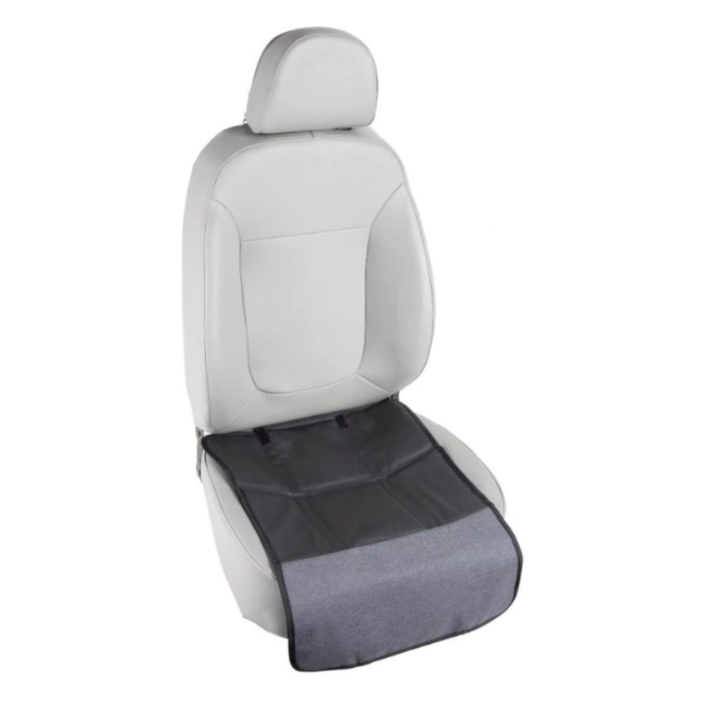 Das Produkt kann in zwei separate Teile geteilt werden – das Unterteil bedeckt die Sitzfläche und die Vorderkante unter dem Kindersitz, während das Oberteil als Trittschutz mit Aufbewahrungsfächern dient. Die Installation gelingt im Handumdrehen dank verstellbarer Gurte und der universellen Befestigung an der Kopfstütze.