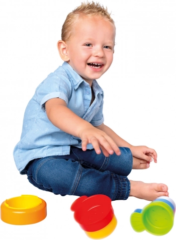 Das Stapeln der Ringe auf die Basis und das Ineinanderstecken stärkt Fingerkraft, Griff und Hand-Auge-Koordination bereits ab 10 Monaten.