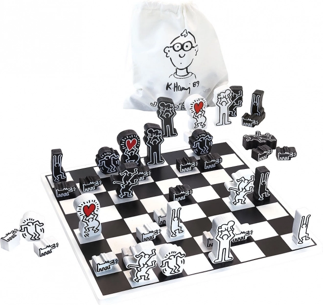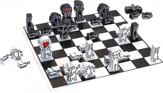 Entdecken Sie das ikonische Holzschach mit grafischem Design von KEITH HARING – eine Verbindung aus klassischem Spiel und moderner Kunst. Stilvolle schwarz-weiße Figuren mit roten Akzenten, hochwertige Verarbeitung und ein praktischer Aufbewahrungsbeutel machen dieses Set zu einem großartigen Geschenk und einer originellen Dekoration.