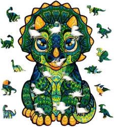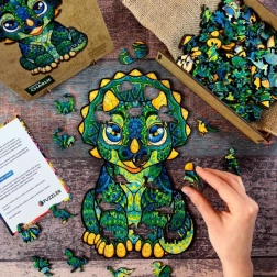 Jedes Puzzleteil und die Farbkombinationen sind speziell für Kinder gestaltet. 100 Teile aus hochwertigem Holz, von denen 17 Teile durch ihre originellen Formen mit Dinosauriermotiven beeindrucken.