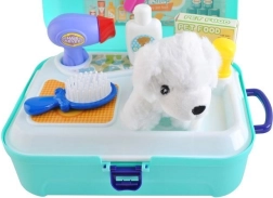 Set zur Pflege von Haustieren ermöglicht es Kindern, die Pflege ihrer Haustiere mit sicheren und kreativen Werkzeugen zu simulieren. Es enthält einen weichen Plüschhund und Zubehör wie Bürste, Schere, Föhn und mehr.