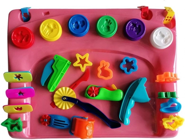 31 Zubehörteile, Modellierunterlage, 6 Becher Knetmasse