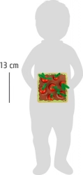 Die Inspiration aus der Montessori-Methode bietet Kindern die Möglichkeit, auf spielerische Weise zu lernen. Das Steck- und Sortierspiel arbeitet mit sieben Karotten unterschiedlicher Größen, die Kinder durch Vergleich in die richtigen Löcher im Brett stecken. Dieses Spielset hilft, feinmotorische Fähigkeiten, Größenverständnis und Beobachtungsgabe zu entwickeln. Zusätzlich fördert das realistische Design der grünen Filzteile auch Rollenspiele und die Fantasie junger Gärtner.