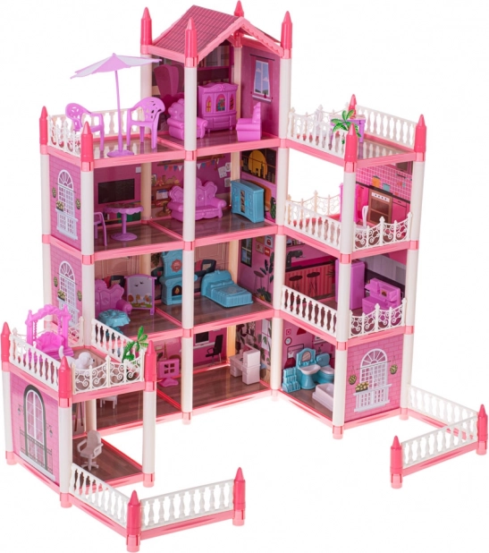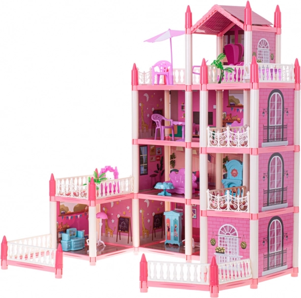 Toller Spaß für Ihre Kinder! Die Rosa Villa bietet endlose Möglichkeiten für kreatives Spielen. Kinder können die vier Etagen nach ihren Vorstellungen gestalten und ihr eigenes gemütliches Zuhause für Puppen schaffen. Das Set enthält Möbel und Dekorationselemente, die das Aussehen realistisch gestalten.