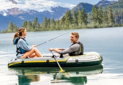 Ausgelegt für 2 Erwachsene mit einer maximalen Tragfähigkeit von 240 kg. Der aufblasbare Boden erhöht den Komfort, Riemenhalter für Ruder und Rutenhalter erfreuen Freizeitpaddler und Angler gleichermaßen. Das Boot kann mit einem Elektromotor nachgerüstet werden (entsprechende Halterung/Motor separat erhältlich).