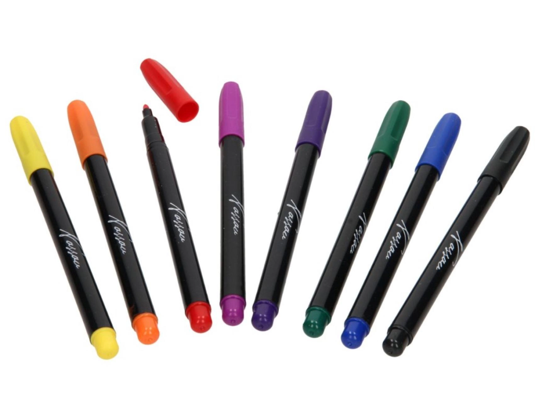 Entdecken Sie die Freude am eigenen Design mit dem praktischen Set aus 8 wasserfesten Textilmarkern. Diese Marker sind ideal zum Dekorieren von Baumwoll-T-Shirts, Taschen, Kissen oder anderen Stoffen mit hellem Hintergrund. Die Farben halten der Wäsche stand, bewahren Form und Intensität und können miteinander gemischt werden, um originelle Farbtöne zu erzielen.