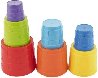Die Becher können zu einem hohen Turm gestapelt oder ineinander gesteckt werden. So entwickeln Kinder Feinmotorik, Koordination und logisches Denken.