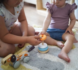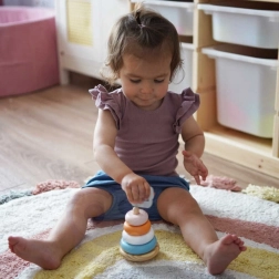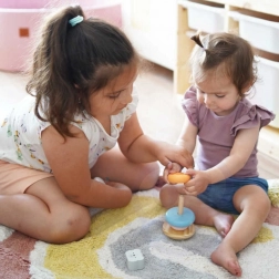 Das Einsetzen der Ringe auf die Basis bringt den Kindern nicht nur Freude, sondern entwickelt gleichzeitig ihre Koordinationsfähigkeiten und logisches Denken. Die Kinder lernen auch, Farben zu erkennen und mit verschiedenen Formen zu arbeiten.