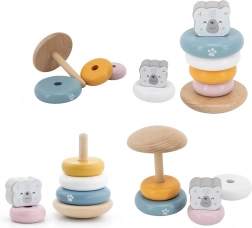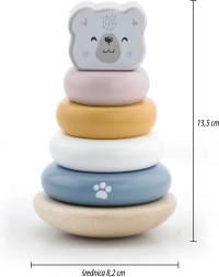 Die Holz-Bildungspyramide mit Eisbär-Motiv ist das ideale Spielzeug für die Kleinsten. Diese Pyramide ist mit sechs Ringen in verschiedenen Größen und Farben ausgestattet, einschließlich eines Hauptkreises mit Bärenkopf. Dank der robusten Holzkonstruktion ist das Spielzeug nicht nur sicher, sondern auch strapazierfähig.