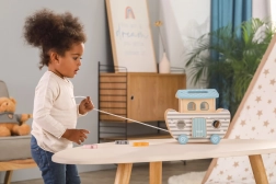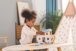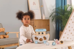 Mit 14 Teilen – Arche, Häuschen und einem Set von Tieren – lernen Kinder Formen, Farben und Paare zu unterscheiden und trainieren gleichzeitig Hand-Auge-Koordination und logisches Denken. Das Spielzeug ist ab 18 Monaten geeignet und dank abgerundeter Kanten sicher für kleine Entdecker.