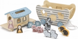 Dank der Schnur lässt sich die Arche leicht durch das Zimmer ziehen. Kinder entwickeln Gleichgewicht, Gehen und Bewegungsrhythmus beim spielerischen Fahren.