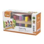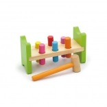 Das Einschlagen der farbigen Stifte trainiert Griff, Präzision und Hand-Auge-Koordination.