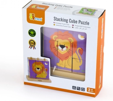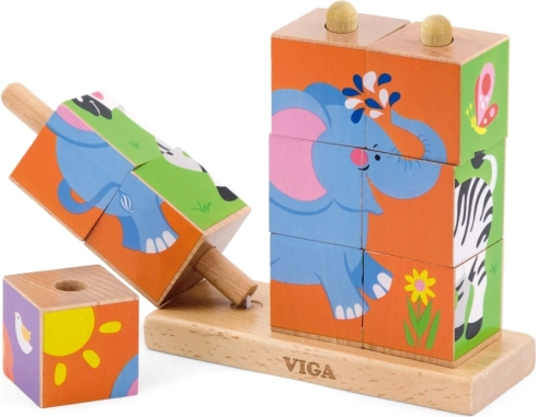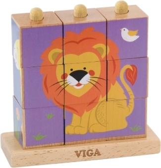 Entdecken Sie ein unterhaltsames Holzspielzeug für die Kleinsten: die Viga-Steckwürfel mit Safari-Tieren. Kinder setzen aus 9 robusten Holzwürfeln Bilder von Elefant, Löwe, Giraffe und Zebra auf einem stabilen Ständer zusammen. Hochwertiges Buchenholz, kippbare Stifte für leichtes Drehen und Förderung der Feinmotorik, Logik und Geduld. Ideal ab 24 Monaten.