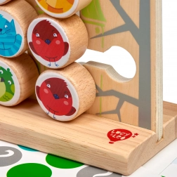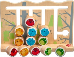 Dieses hochwertige Holzspiel bietet intuitives Schieben bunter Tier-Stifte in eingefrästen Bahnen. Dank der 6 zweiseitigen Karten mit Vorlagen trainieren Kinder die Auge-Hand-Koordination, Geduld und Konzentration. Nach dem Spielen lassen sich alle Teile einfach in einem Leinenbeutel verstauen.
