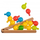Der Holzsockel mit Löchern, bunte Stifte und die Pinzette motivieren Kinder zu einem präzisen Griff und trainieren Feinmotorik sowie Augen–Hand–Koordination.