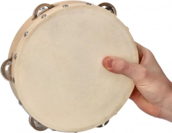 Das Tamburin ist aus Holz und Metall gefertigt, was eine lange Lebensdauer und Sicherheit beim Spielen gewährleistet.