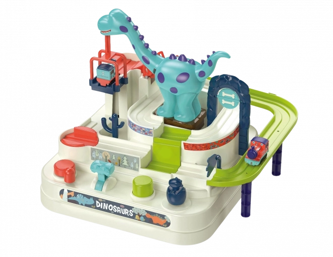 Eine unterhaltsame Hindernisbahn mit Dinosaurier-Motiv und zwei kleinen Zügen für kleine Rennfahrer. Bietet 4 Bedienhebel für einen interaktiven Streckenverlauf, fördert die Motorik, das logische Denken und sorgt für Stunden kreativen Spielspaßes.