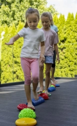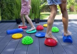 Das Set ist ideal für die sensorische Integration, das Training der Propriozeption, die Unterstützung einer korrekten Körperhaltung und eine natürliche Fußmassage, die die Durchblutung fördert. Robuste, rutschfeste und leicht zu reinigende Elemente sind für den Innen- und Außenbereich geeignet.