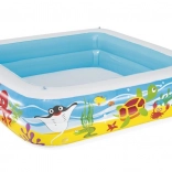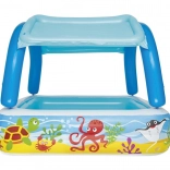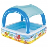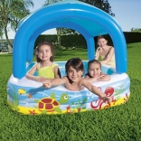 Das aufblasbare BESTWAY-Becken ist ideal für kleine Kinder dank seines robusten Vinylmaterials und des Baldachinschutzes vor der Sonne. Genießen Sie sicheres und unterhaltsames Wasserspiel im Garten!