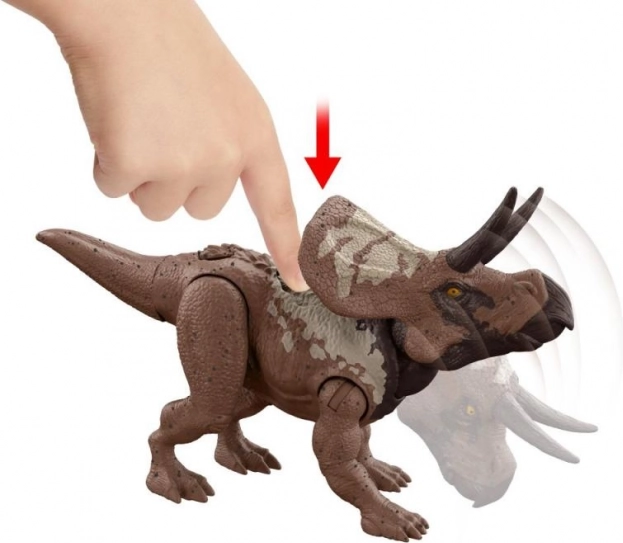 Drücken Sie die Aktivzone und führen Sie den charakteristischen Angriff der jeweiligen Art vor – von einem kraftvollen Kopfstoß bis zum räuberischen Zubeißen. Ideal für actionreiche Spielszenarien.