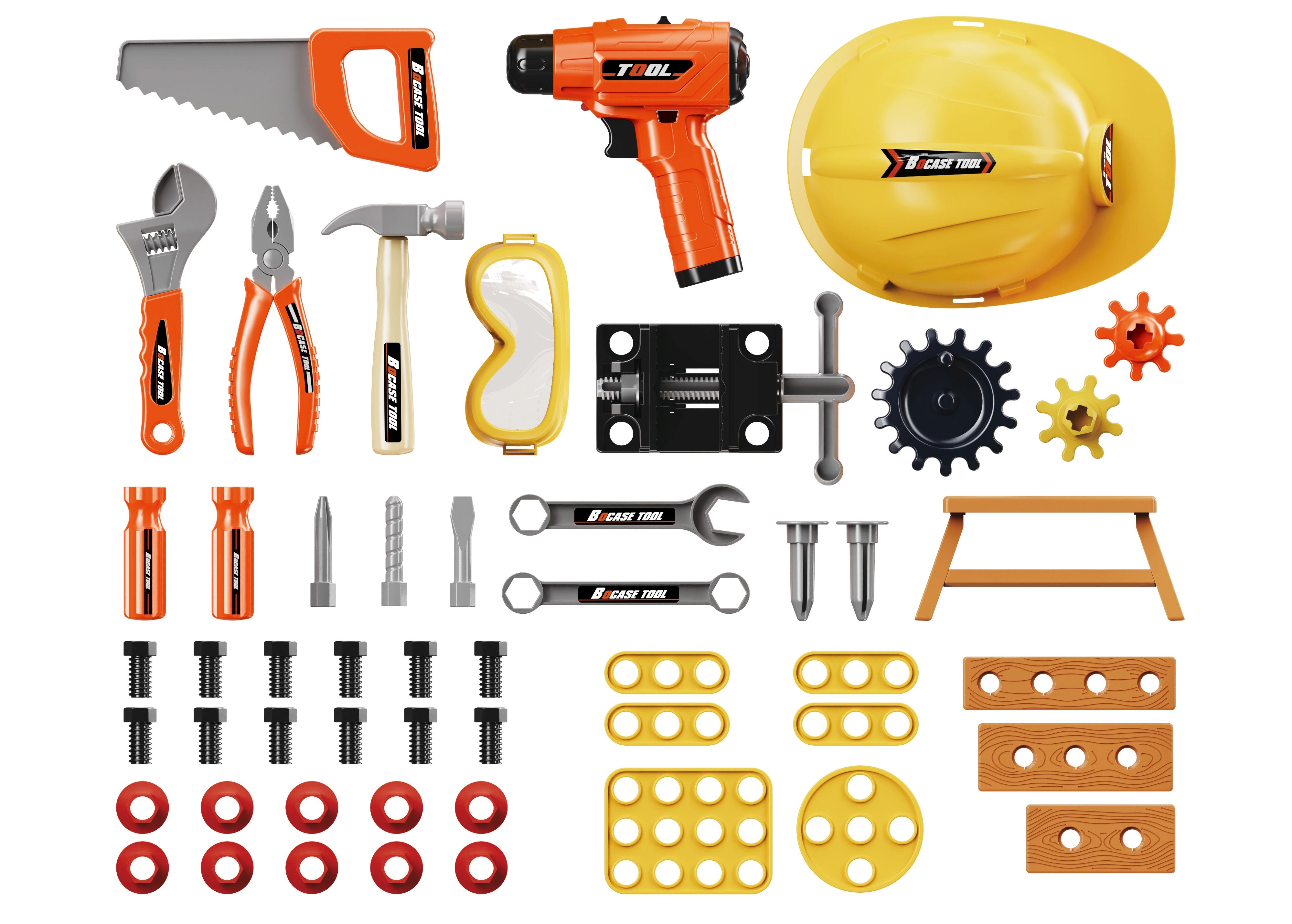 In our selection you’ll find kids’ costumes and play sets: a play kitchen and accessories for little chefs, a children’s doctor set with stethoscope, bandages, and pretend medicines, a kids’ cash register and shopping basket, plus children’s tools, a workbench, and safety gear for the workshop. The props are made from safe materials (wood and plastic), certified and non-toxic, finely detailed, comfortable to hold, and durable enough for everyday play; they develop fine motor skills, communication, cooperation, and logical thinking.
