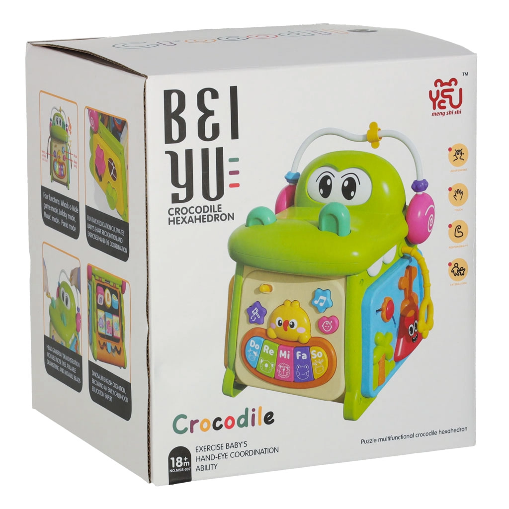 Educational 4-in-1 Crocodile Activity Cube with Shape Sorter and Piano